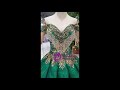 The sleeveless green ballgown has just the right amount of details to make the dress unique and appealing without detracting your natural beauty. Its natural waistline accentuates your natural waistline, featuring sweetheart neckline that is held in place with the two straps join with the arms, decorated with bling detailing hanging down to the bust and even covering half of the body. Moving on towards the fitted bodice which falls down elegantly into a tulle designed skirt which is fully crafted from glittery sequin fabric topped with lace appliques on every panel. It stands straight in place to uplift the whole look of the dressmaking the bride even more beautiful on her wedding day.