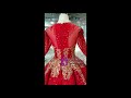 No doubt, this is a true fact, red is obviously becoming the new black. When you wear this red wedding dress to your event, you're going to turn heads girl, because this dress is no mate with the others. It features a scoop neckline, a long sleeve arm style, a lace-up back style, with gold embellished upper bodice. The waistline has a ball gown, with a floor-length and the design prints on this ball gown we bet are the best you've ever seen in a while. Honestly, there wouldn't have been a better fabric for this gorgeous piece than the unique sequin fabric.