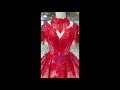 The red ballgown is a lightweight wedding dress showing great class. It’s specially designed for the brides who want to feel comfortable, traditional on their big day without compromising on style. Guests will be amazed by the high necklace that falls into a plunging neckline accompanied by sleeveless bling styled shoulders. Talking about the beautiful red lace body that sinks into the lace fitted waistline. Moreover, it sets off into a beautiful over layered tulle skirt lined with whitish fabric topped with red netted tulle, descending down into a long same fabric train that holds the whole look of the dress in place. The bride will look enchanting with the dotted pattern on the skirt will give a settle feel to the gown.