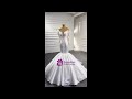 Literate craftsmanship breathes life into this gown—why settle for less? Designed with an eye for harmony, its ruffled off-shoulder neckline and mermaid silhouette blend softness and sensuality. The floral lace embroidery speaks of old-world romance, while beadwork adds a modern sparkle. “I felt like I wore a garden at dusk,” shared a bride. The smooth fabric hugs the figure and unfurls into a trailing hem, combining grace with impact. It’s ideal for the bride who values intricate detail and dramatic design in equal measure.