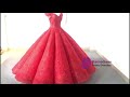 Look luxurious on your wedding day in this exquisite Kemedress wedding dress. Boldly colored in blue and featuring an incredible all-over patterned shimmer, this dress is next-level stunning. The pretty sweetheart neckline with off-the-shoulder sleeves is accentuated by leaf-like beading and lace appliques. A structured bodice is flattering on any bride and helps to draw the eye downward toward the leafy belt. No train is needed on this gorgeous gown, which wows with its princess-style sequined skirt. A matching blue lace-up closure finishes off the back of this dress.