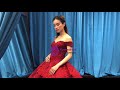 Burgundy prom dress with layers of tulle that extend at the back of the dress into a long and wide train which gives it a dreamy look. Each layer is intricately embroidered and embellished with beads. The laced up back hugs your body giving it a tight finish. The embroidered appliques surround the borders of each layer of the tulle. Off the shoulder neckline and the burgundy color of the ball gown gives it a sexy appealing look. The sleeveless off the shoulder neckline enhances the beauty of your clavicle. The dramatic, sheer train flows out over the silhouette with embroidered applique details applied throughout for an artful finish.