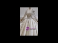 A winsome wedding dress that will make you look like a princess on your long awaited wedding day. The dress starts off with a v necked corset bodice ornate with white sequins and beads. Long puff sleeves add an element of ethereal grace to the entire outlook of the gown. Tulle layered skirt arises from beneath the tight fitted waistline and smoothly goes to the floor length. The back of this gown is beautified with a cut out and a lace up style for a corset flattering back. A long rounded train gives the ultimate feminine feel.