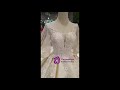 Some brides want to stick with the traditional and classic wedding dress yet want to add some modesty to their overall look. This champagne ball gown fulfils your desires with its v-neckline that drops into puffy sleeves topped with bling detailing that hangs over the fabric. Lace-up beaded bodice cinches at the waistline to modify your curves with beauty along with the aesthetics ball styled skirt falling down into detailed chapel train enhance the charm of the overall gown. Skirt decorated with lace patterns dripping downwards to the length giving a very settle look.