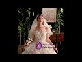 Simplicity and elegance are the two prominent features of this wedding dress. Off the shoulder, sweetheart neckline gives prominence to your collar bones and neck. Festooned with sequins, this dress shines bright like stars in the sky. The upper part of the gown features a leaf-shaped tulle with a tulle flower in the center of the midriff, another leaf dangles below the waistline. The upper layer of the skirt has asymmetrical tulle skirt while the lower layer consists of the long and wide train that extends at the back. Fine sequins detailing beautifies the elegance of the dress making it look alluring and eye-catching.