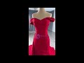 Luxuriously rendered in bold red, this dress exudes confidence and high glamour. The off-the-shoulder neckline features elegant beaded details extending onto the sleeves. A fitted bodice seamlessly flows into a sleek mermaid skirt, crafting a supremely sophisticated silhouette. A long train introduces undeniable drama and grandeur. Made from opulent, satin-like fabric with a deep, captivating sheen, it amplifies the rich red hue. Strategic beaded accents on both the bodice and skirt provide sophisticated sparkle, making it ideal for the most formal proms or gala events. This gown ensures a powerful, lasting impression and an entrance defined by pure, sophisticated confidence.
