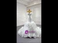 Perfection personified in this sculptural mermaid wedding dresses silhouette that hugs like liquid satin before exploding into a tulle cascade. The off-shoulder wedding dresses neckline drips with chiffon ruffles, framing collarbones like sea foam, while the bodice blazes with beaded wedding dresses artistry—Swarovski crystals arranged in constellations that ignite with every breath. Delicate 3D orchids climb the skirt like living vines, blurring nature and fantasy. A detachable train transforms from cathedral drama to reception-ready flourish. For brides seeking red-carpet impact, this is Hollywood glam wedding dresses redefined: a fusion of architectural precision and organic romance. The silhouette elongates while the floral-adorned train paints ethereal motion. Ideal for modern venues or coastal cliffs, it makes the wearer a living sculpture where light performs miracles.