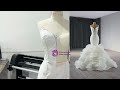 Bathed in luxury and designed with precision, this mermaid wedding dress is a true masterpiece of elegance and sophistication. The dress features a plunging sweetheart neckline that adds a touch of allure and frames the upper body beautifully. The bodice is intricately beaded with shimmering details that catch the light with every move, creating a dazzling effect. The fitted design hugs the body, accentuating the natural curves before flaring out into a stunning, multi-layered ruffle skirt. The soft ivory hue enhances the dress's timeless appeal, making it perfect for those who want to make a memorable entrance. Made from luxurious materials, this gown ensures comfort and ease of movement, allowing you to dance the night away effortlessly. This dress is perfect for the prom-goer who seeks a combination of classic elegance and modern sophistication. Its intricate detailing and luxurious feel make it an unforgettable choice, ensuring you shine brightly on your special night.